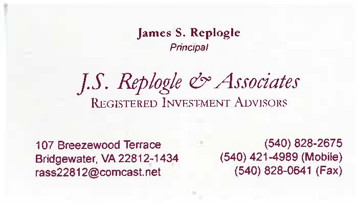 As a Registered Investment Advisor we have been in business for over 20 years, but never had a logo. Just name and address. Historically our name alone represented the trust and confidence of our client base. Although small (20-50 million) we provide individual client services with an unusually high level of fiduciary support from bill paying to investments; focusing on having the correct amount of funds at the right place at the appropriate time. Honesty, integrity, and personalized service are important terms for us.Located in the mountains of the Shenandoah Valley of Virginia we have considered some form of growing plant as a representative illustration (tree, ivy, etc.) of our business. Something that symbolizes the relationship of planting, growing, maturing & harvesting - just like saving, investing, managing the investments, and using them to enhance the quality of life (I.e. education, retirement, etc.)We are interested in something dynamic (not static) that represents the growing (evolving) nature of our "trust & confidence" relationship with clients. We wish to build a unique, lifetime relationship with clients and always interview them to see if they fit our "abilities profile." Not every one that contacts us becomes a client.If an appropriate logo was to be accepted it would always be used with the company name - JS Replogle & Associates. That company name always appears in a Garamond Italic type font. Burgundy typeface on an antique gray background.