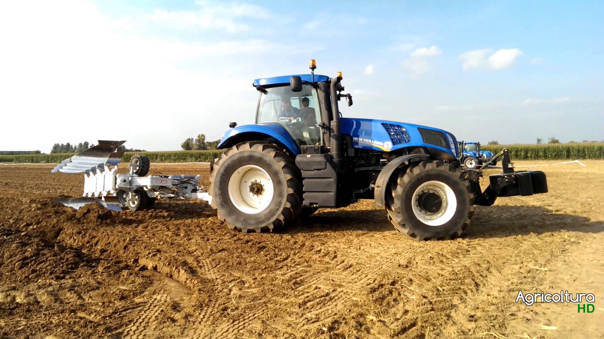 - a plow of some description on the back of the trator, perhaps working some dirt.