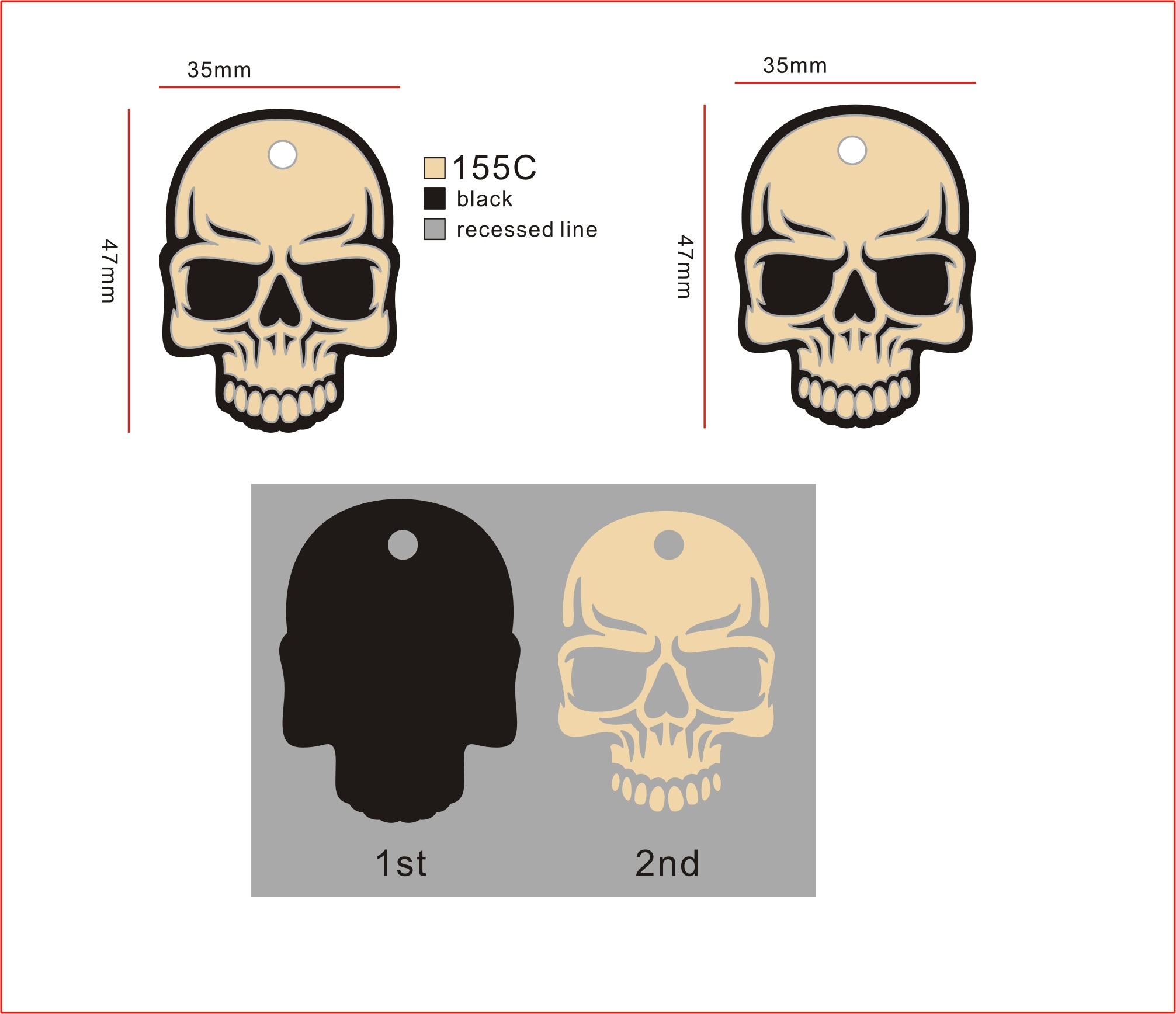 We need a graphic design for a 3D silicone key cap. We are looking for a realistic skull design. Will be moulded in 2 colors (black background - natural foreground). Keychain hole located at top. We found a graphic online we like but want our own unique design (sample attached). We would like to see some contouring and detail to take advantage of the 3D moulding.