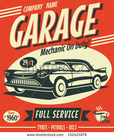 I like the red, tan and black just like in the sample 1 garage ad but you don't have to be stuck to those colors. Maybe have him holding a couple grocery bags out the side of the car. Or have a pile of stuff in the back... Just something to show that he is running errands. It should convey trust and fast friendly service.