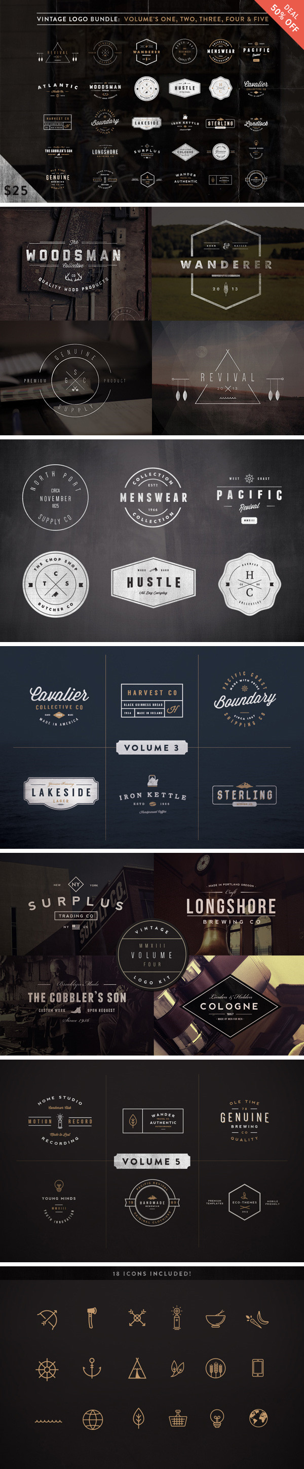 We enjoy badge-style logos combining the position of the shape with the text, or an overall logo contained within a shape, rather than having each item separated.