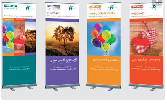- All of the content information should be near the to of the banner, as the banner will be behind an information table at medical conferences.