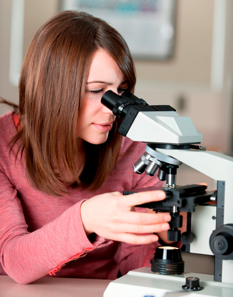 Woman with microcope Monday, 28 March 2016 17:19:11
