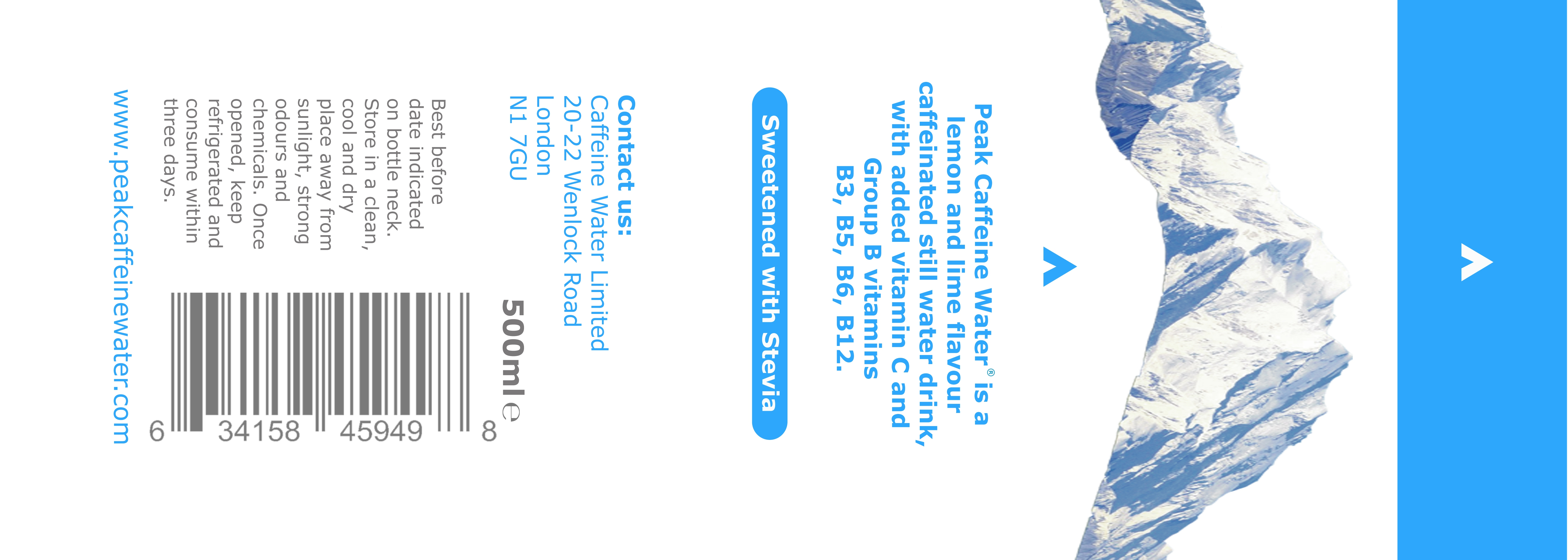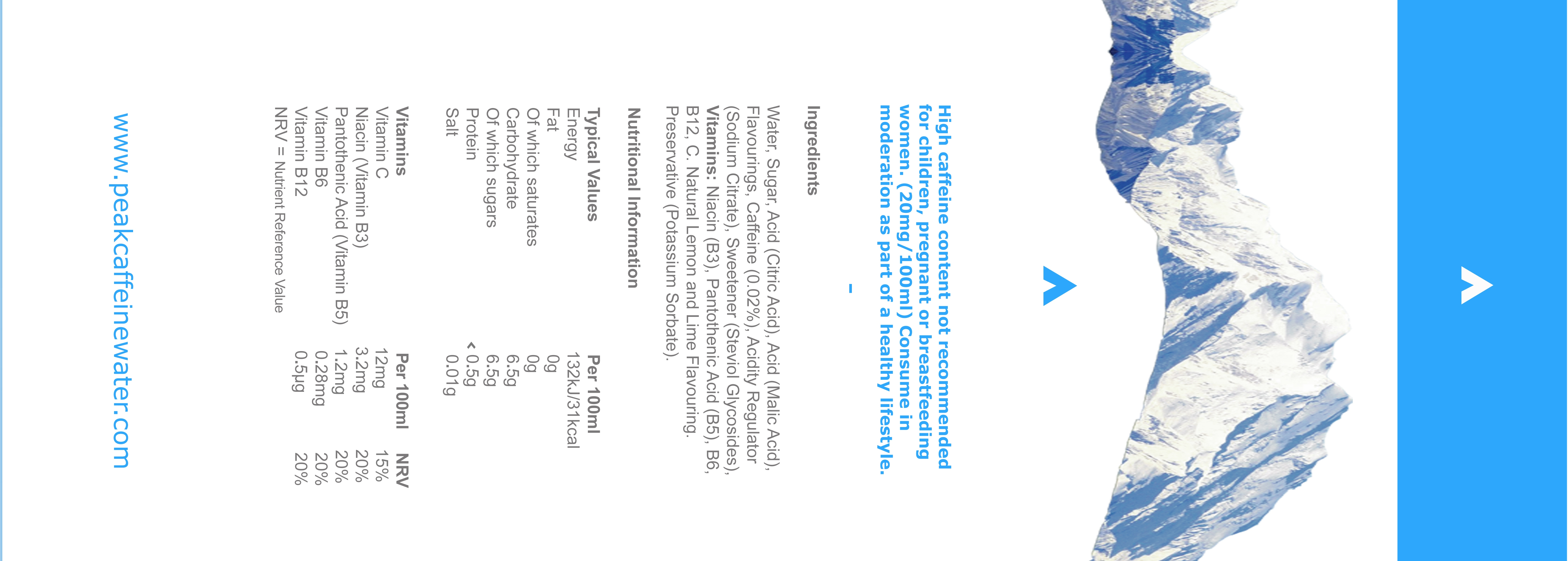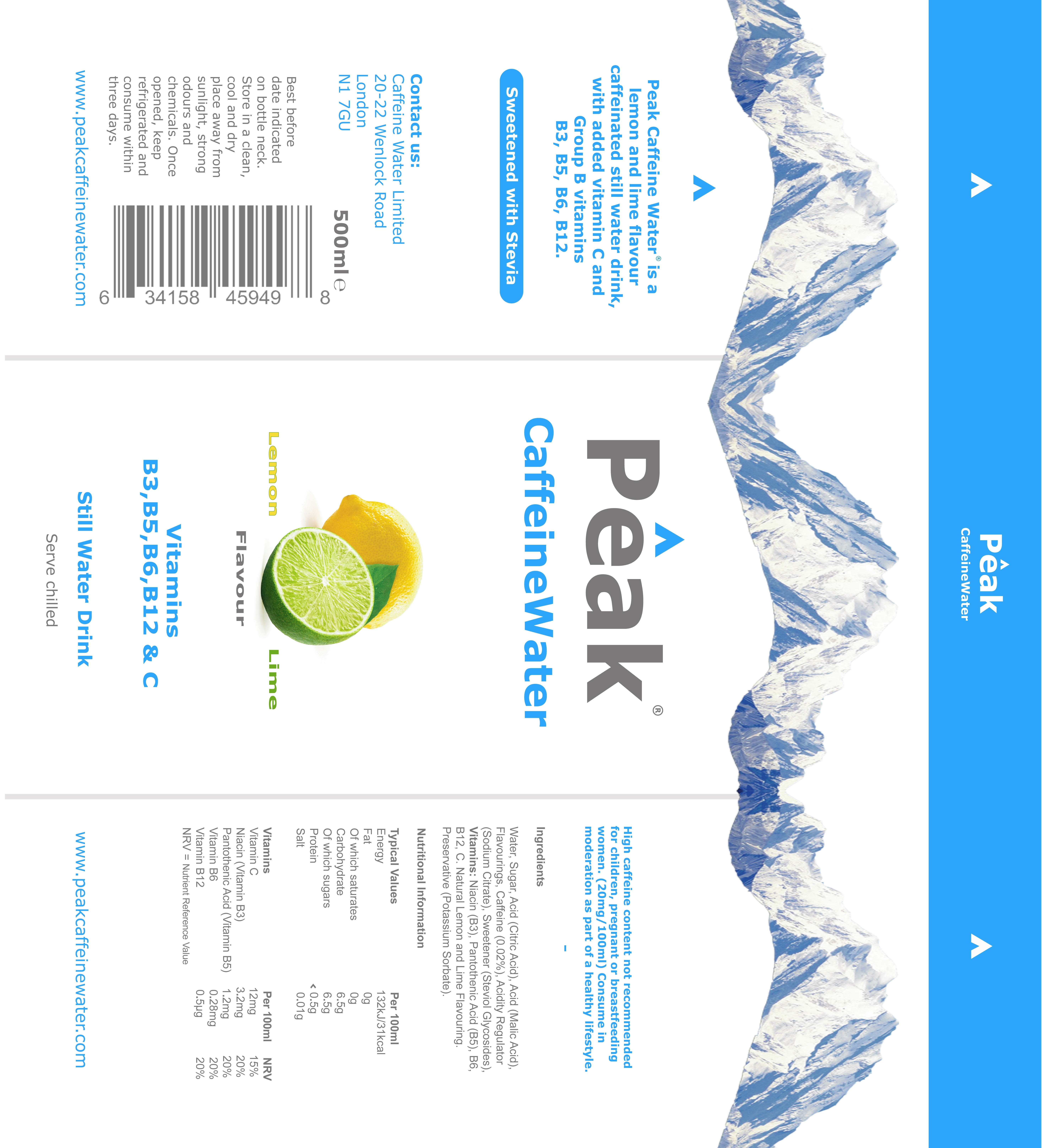 Peak Caffeine Water Bottle Label