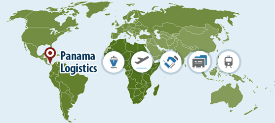 - Distribution, Panamá, Safety, service icons (warehouse, airplane, cargo ship, truck, customs, documents)