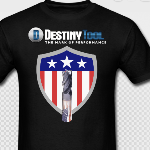 We nee a t-shirt design that captures our key product and industry. Needs to display our logo, show a graphical representation of at least 1 of our products "end mill", and have some sort of American Flag feel to it. If possible we would like an American Flag shield that looks to have been CNC machined out of metal.