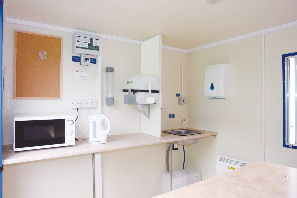 These units provide facilities for six people with fitted seating, tables and separate toilet facilities, including a wash hand basin as standard.