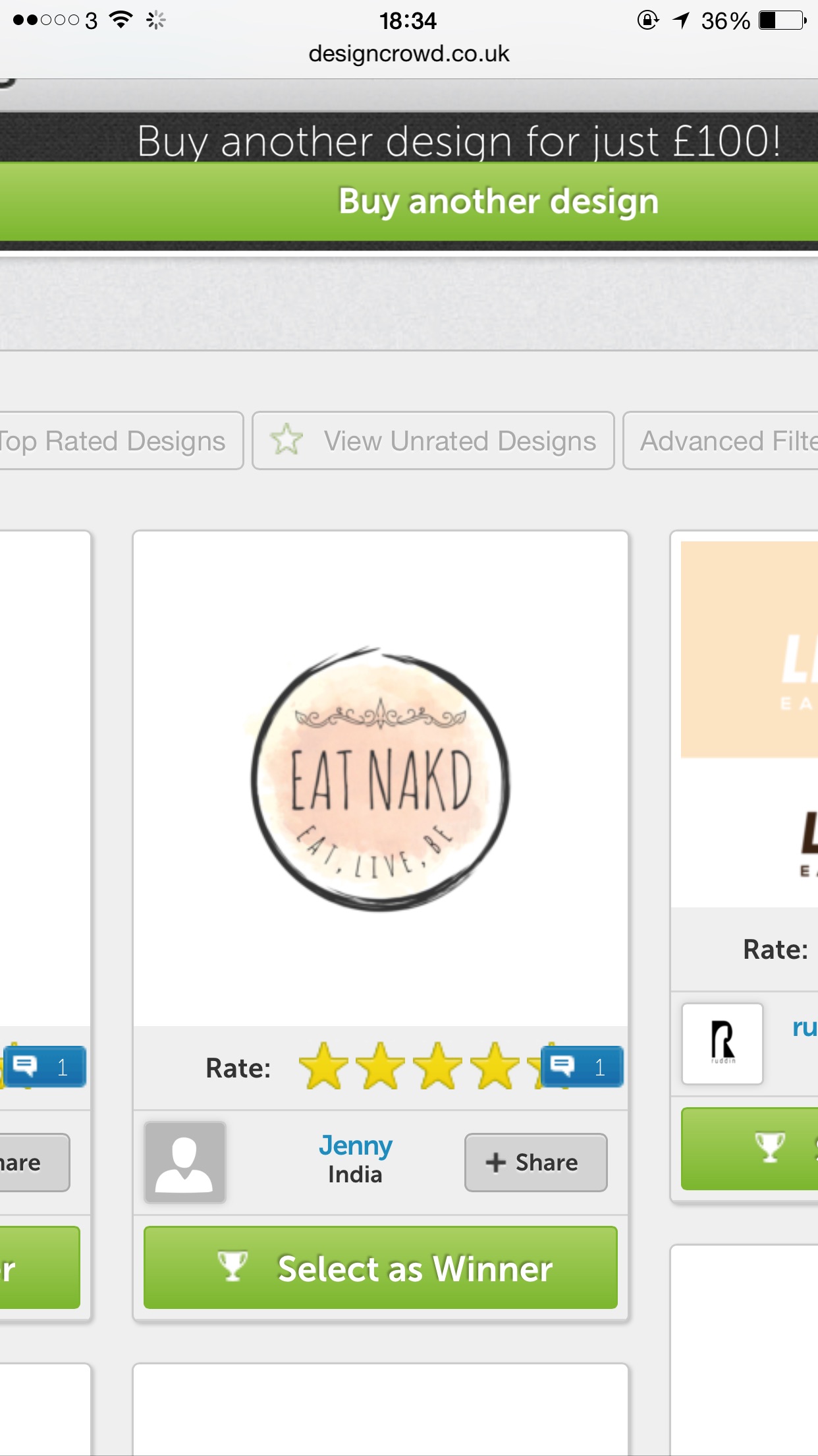 This customer received 156 logo designs from 34 designers. They chose this logo design from Jenny as the winning design.