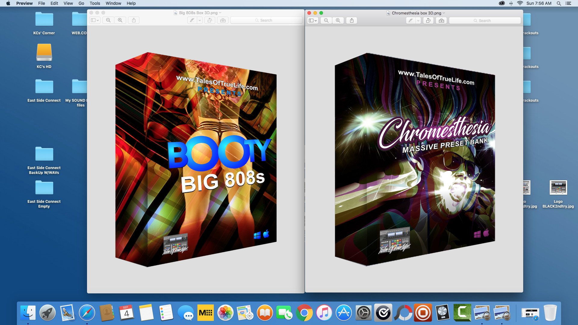 I've attached some examples of another producers sound pack graphics and boxes, so you have an idea of what I'm looking for. I also have attached two pictures of "Chromesthesia" to inspire the graphics I'm hoping for on my new product. I would like my product to say "www.TalesOfTrueLife.com Presents" at the top. At the bottom I would like my logo to go on the bottom left. Please also add the Mac and PC logo on the bottom right. If you have any questions please let me know.