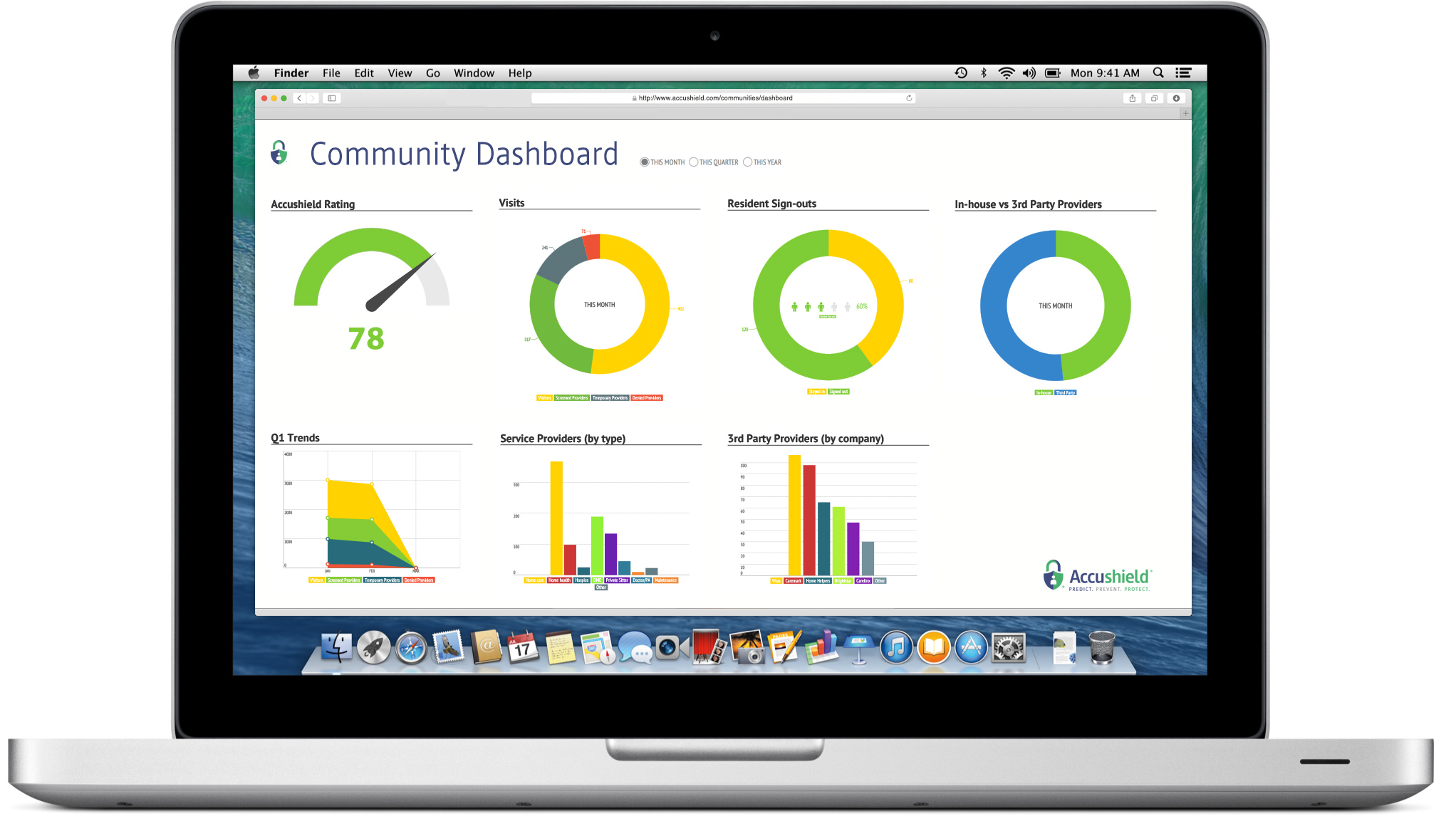 - The paragraph needs to read: The Accushield touch screen kiosk removes the paper sign-in logs from the front desk and allows families, friends, and third-party caregivers the ability to digitally sign-in. The Accushield kiosk not only efficiently manages the visitors coming in and out of your building, but it also tracks your "least visited residents". Communities can use the Love Meter data point to show a little love and affection to the residents who recieve very few visitors.
