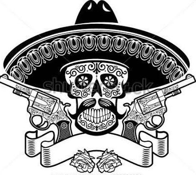- Skull must be black and white. With a hint if Mexican influence . electric blue font / text .