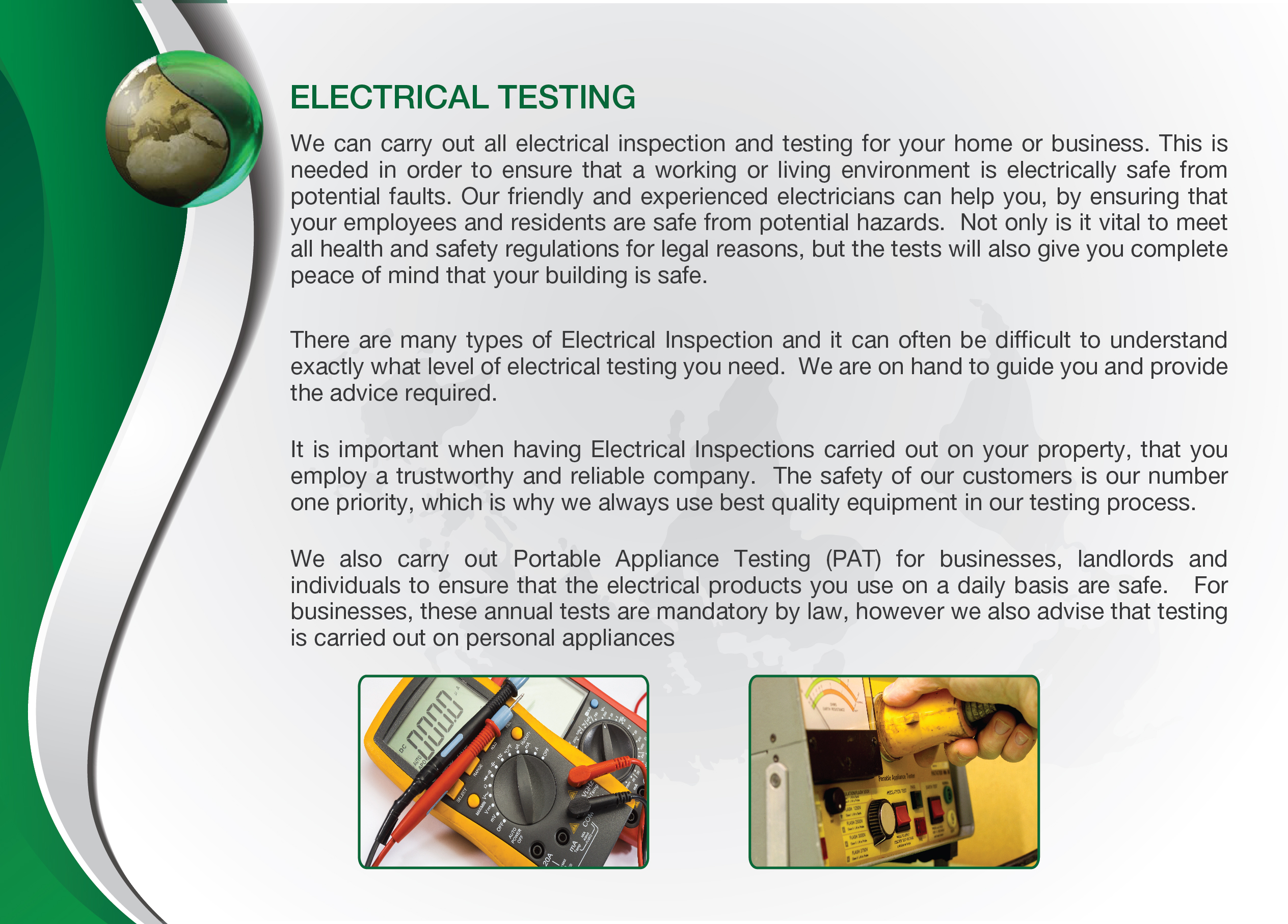 Electrical Firm Brochure Showing services we provide