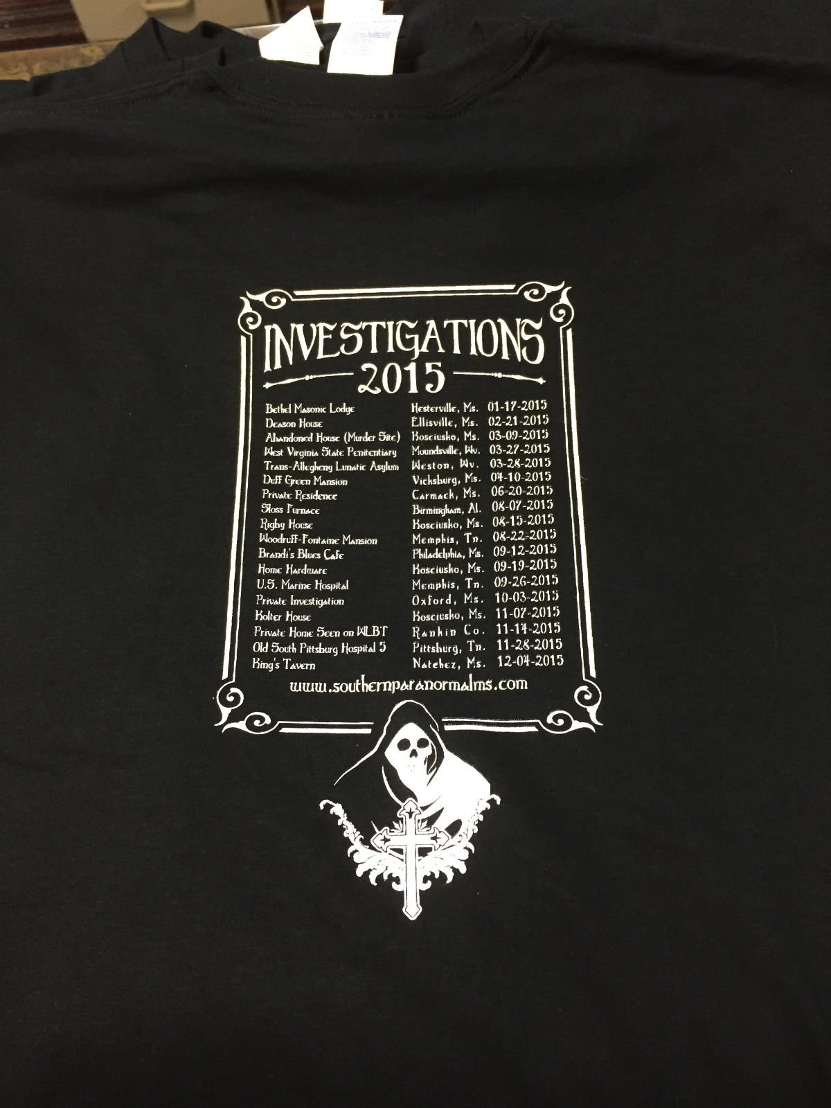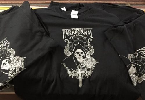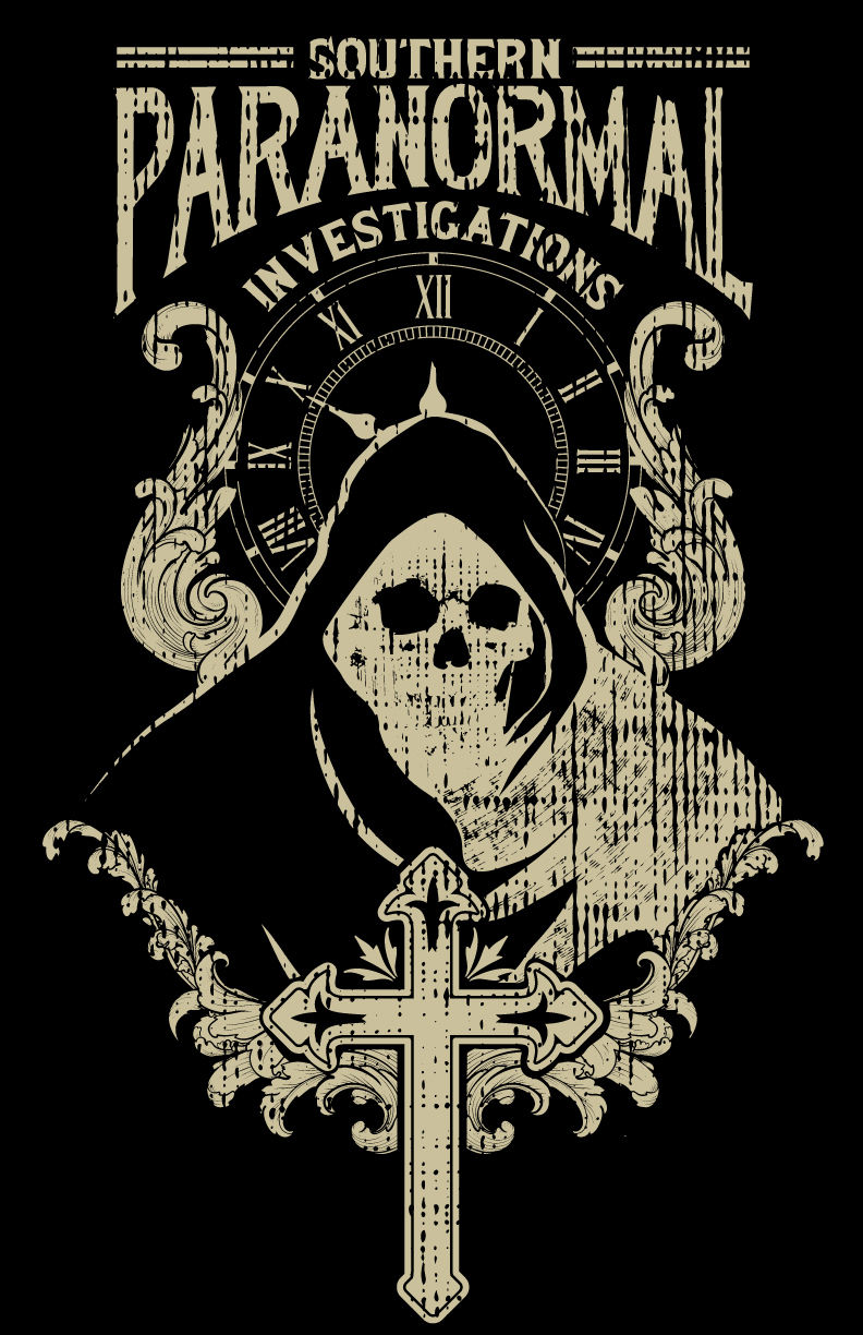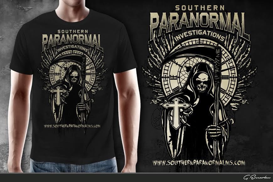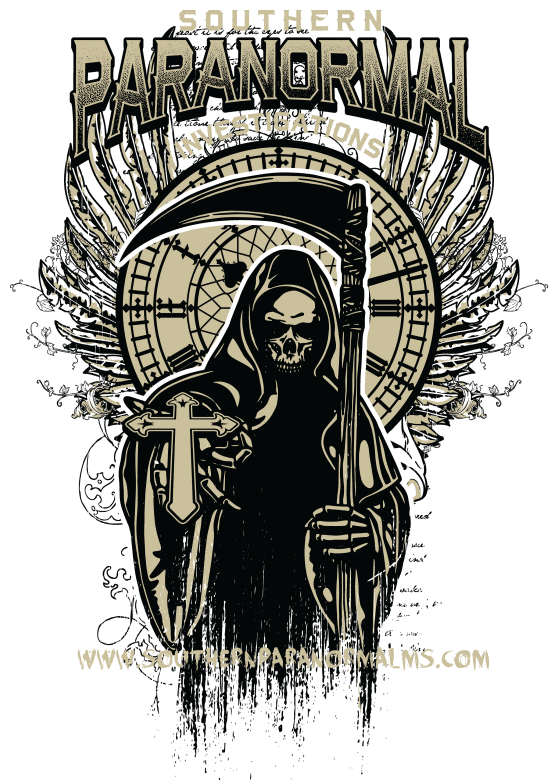 We are southern paranormal, a ghost hunting group. We travel to some of the countries most haunted places in the USA. Every year we have a t-shirt designed and have our locations and date on back of the places we investigated and a new front design. i am including the past two years designs that incorporated our logo, a grim reaper and Gothic cross on front. we would like to keep that theme but have it enough of a change as to not be confused with the prior years design.. Our website is SouthernParanormalMS.com the back will include the following..