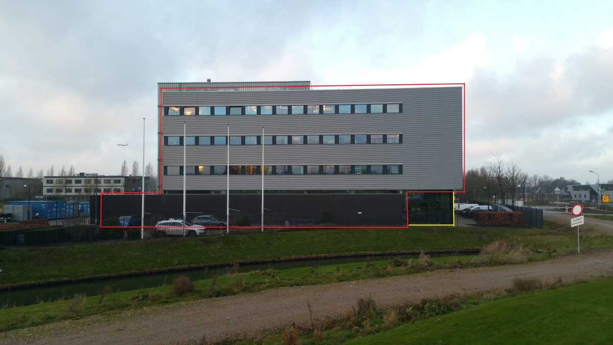 We need a logo for a property management company called 'New Yorkstraat 10-16 Beheer'. The company manages the office building as is shown in the picture. We would like a logo that shows a stylized version of the building. Because the picture might be unclear, the outlining of the building is emphasized with red lines. The yellow line shows the front of the building, which is made of glass. This could optionally be included in the logo, but is not a must.
