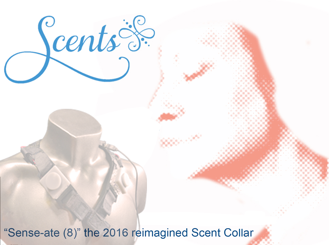 Target is scent for VR experiences. This is a second version of a scent collar I made and patented 10 years ago. It never had a good name or a logo. Now we have a name: