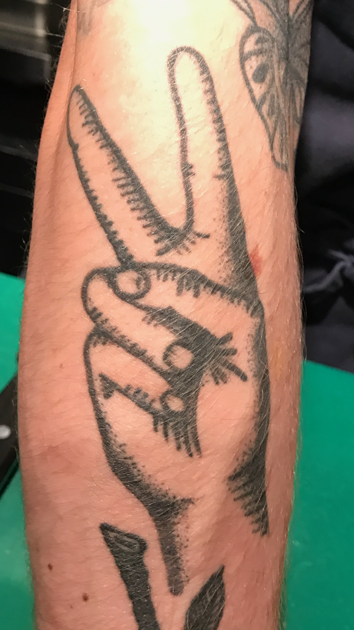 The logo needs to include the hand "V sign" (the one in the tattoo) and the word HistoryHit (one word). It would also be great to see how you visualise the HH on an app button.