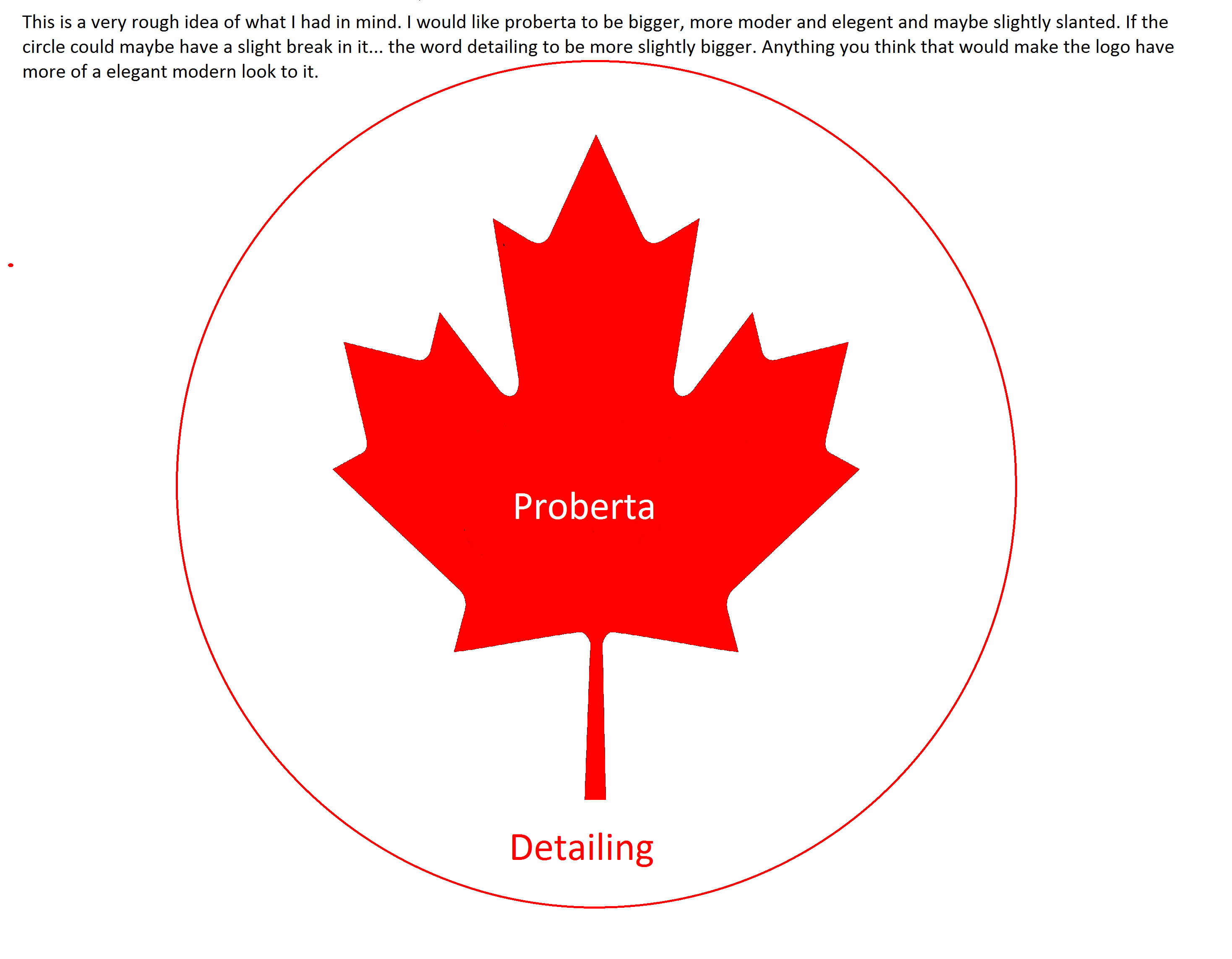 We need a logo for a new company call 'Proberta Detailing'. It is a simple car detailing business. I would like a design that has a red maple leaf with the word proberta in it and the word detailing below the maple leaf. I would like the font for the word proberta to be more modern, blocky type of style with a slight slant (im flexible here) and the word detailing to be in a different font style below (use your best judgment). I would like the color of the word proberta in the canadian flag to be white with a black border while the word detailing to be red with a black border.