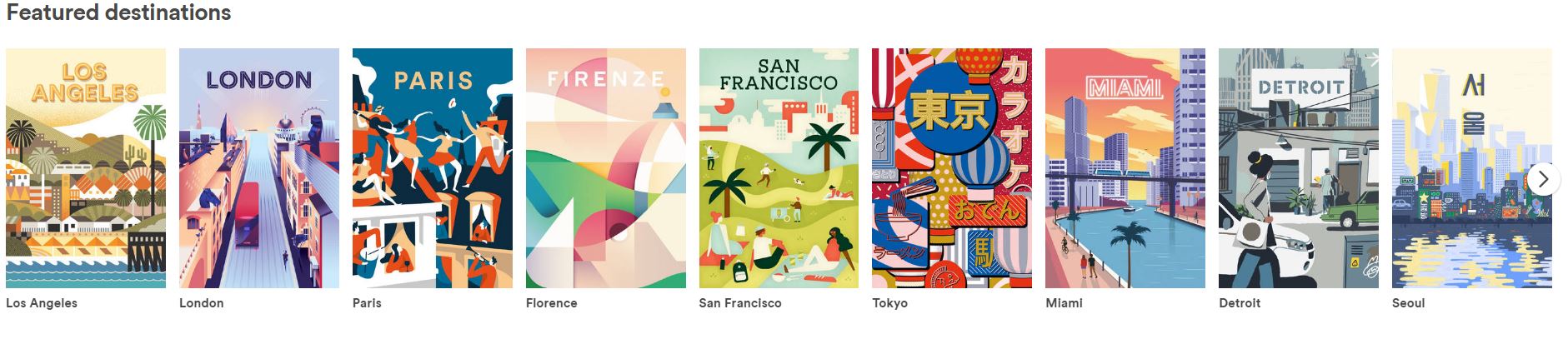 An inspiration for this project is the Featured Destinations section on the AirBnB homepage.