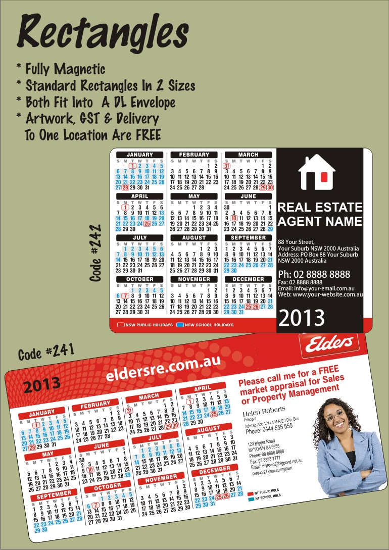 We would like the calender on there with public holidays in a light grey and school holidays in a light blue. I am happy for just the designs to be sent through and then once i am happy i will decide on one and we can have the correct information on there.