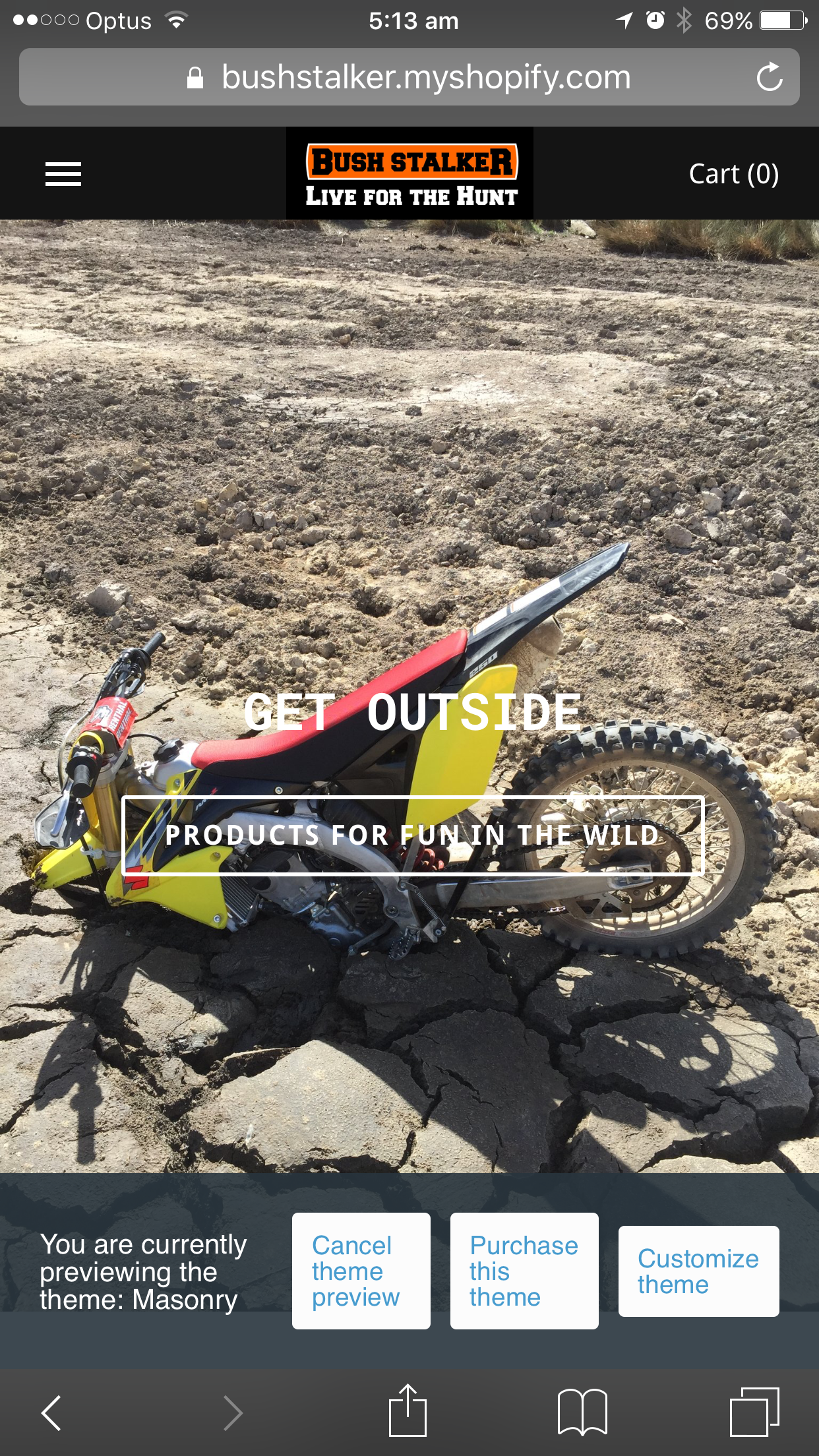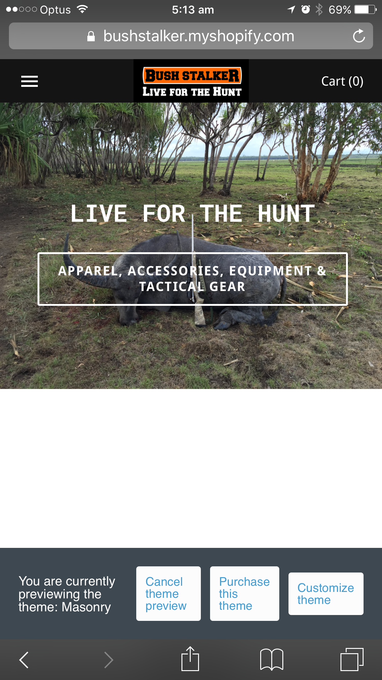 Design "BUSHSTALKER" Shopify online store for hunting, outdoor and tactical accessories, appare