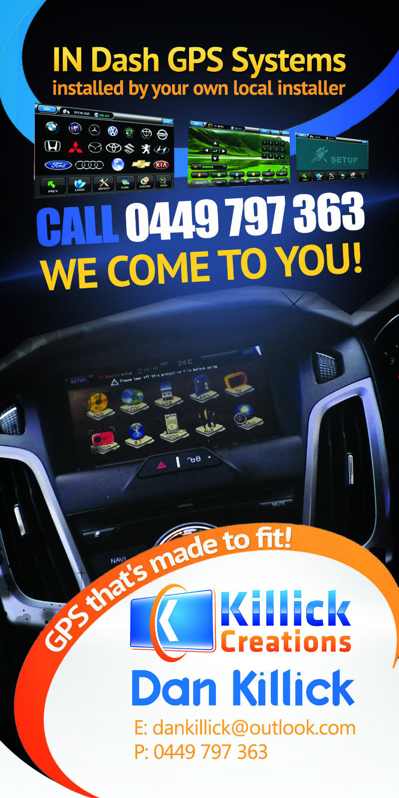 Wanting a design to advertise the supply and install of my new FORD PX RANGER in dash GPS system.