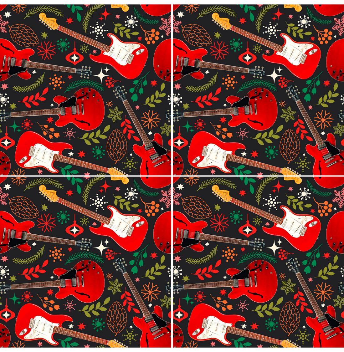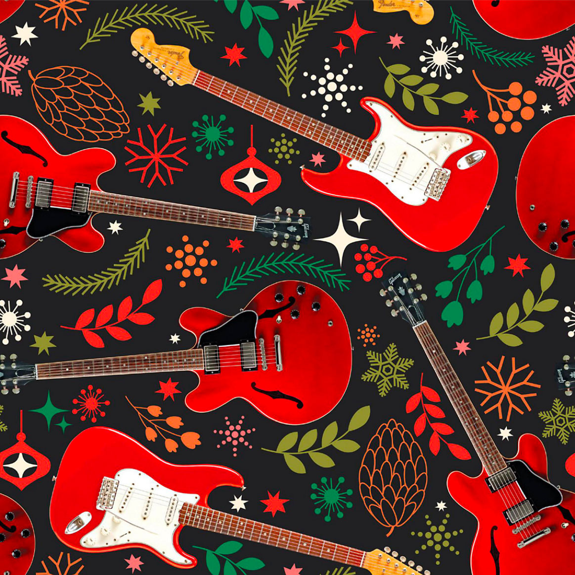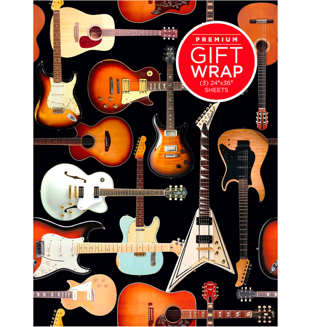 Guitar Themed Holiday Wrapping Paper Design