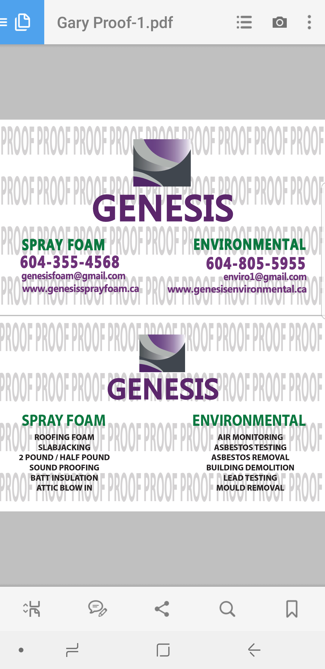 I have business cards but need new ones. The ones I have are very bland. Here is. Y company website http://www.genesissprayfoam.ca