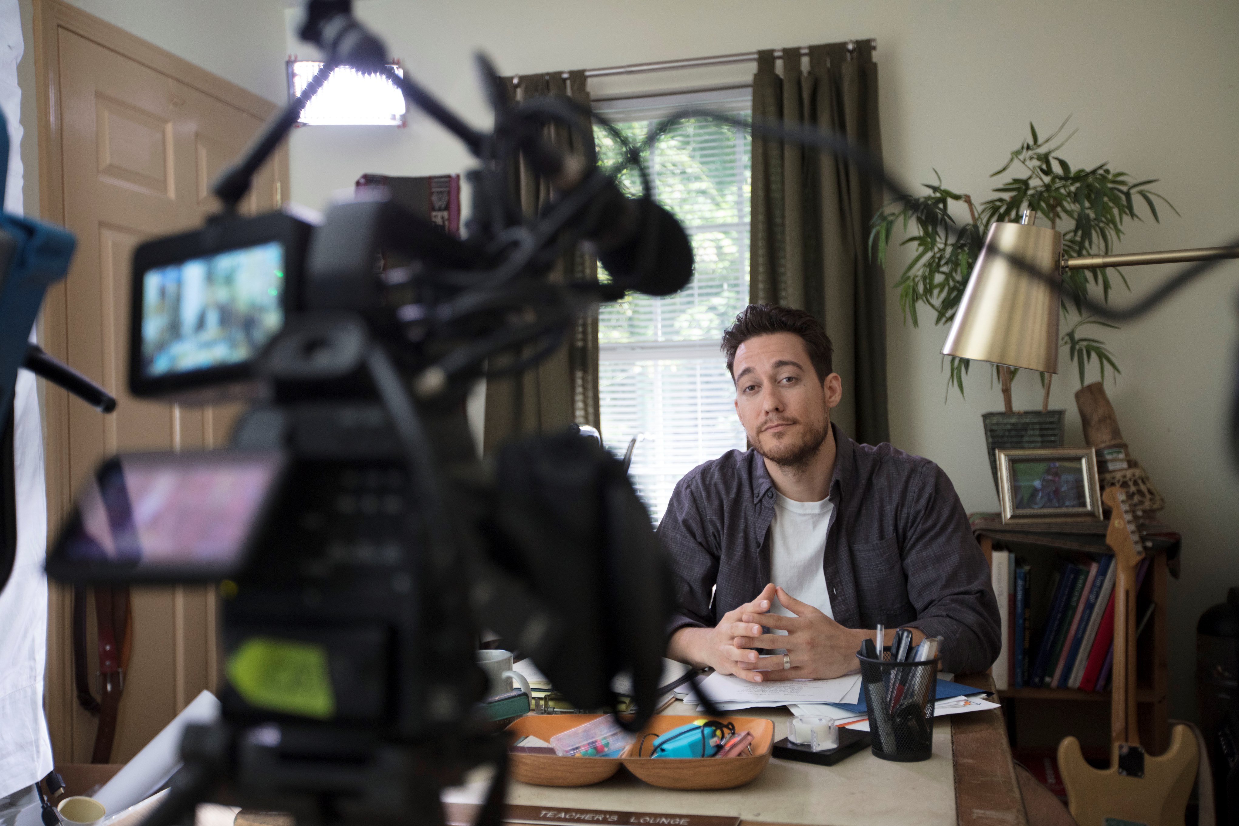 The Glasses that the main character Scott Cooper wears are actually spy camera glasses that he uses to film the small group undercover.