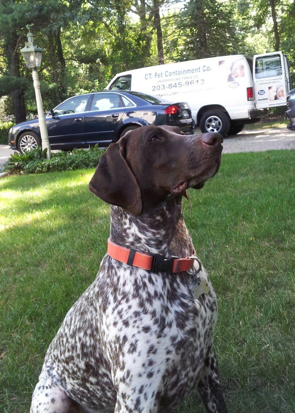 "Keeping in touch with them" offering them $25.00 service call/ $75.00 install I My Logo on my truck/paper work is the Girl & Dog touching noises.