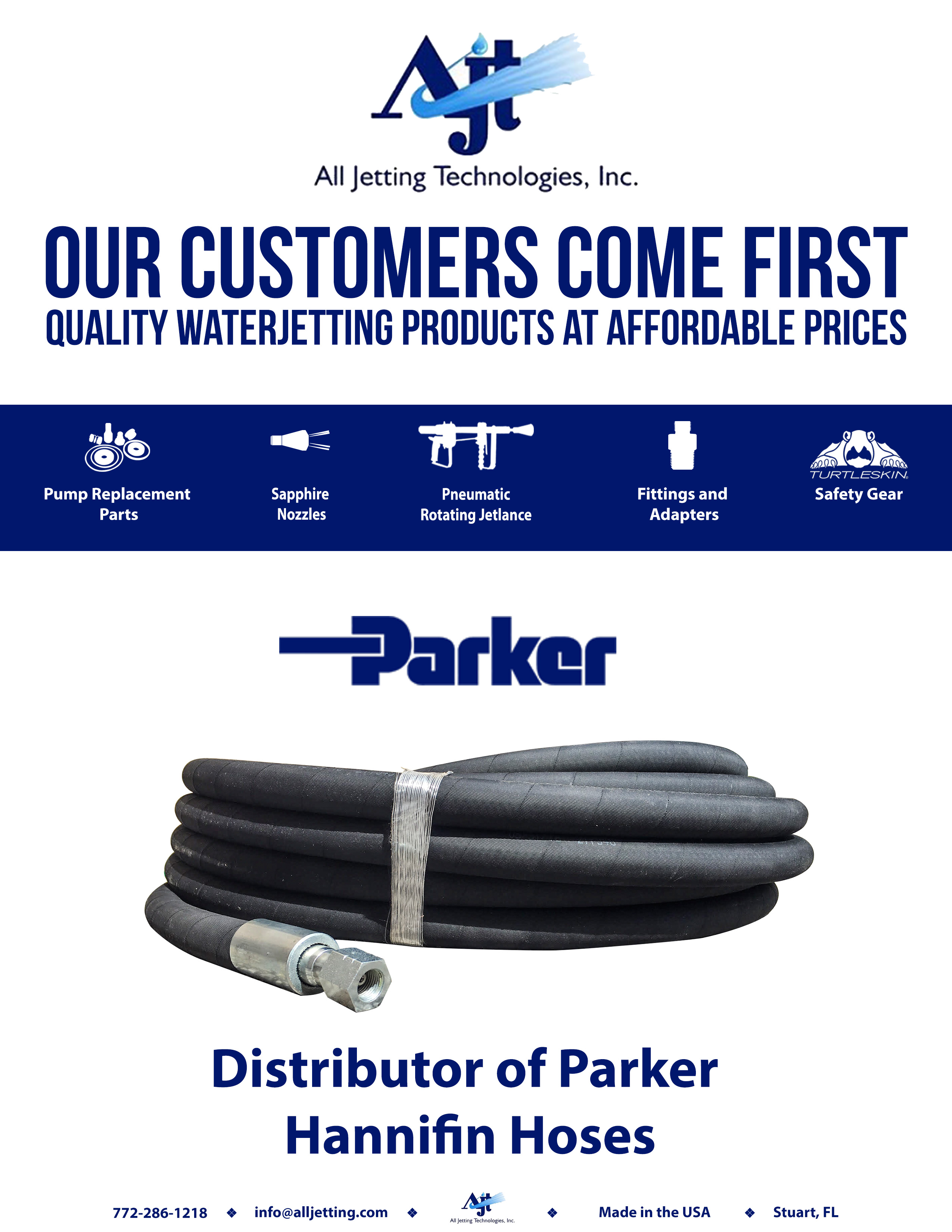 Some of the parts are Parker Hannifin Hoses, Sapphire Nozzles, Rotating Jetlance.