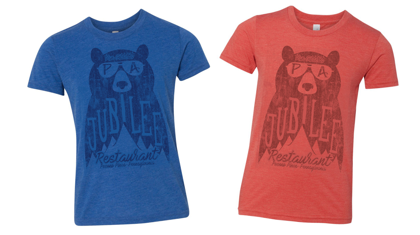 We are a family restaurant serving breakfast, lunch and dinner. We have been in operation since 1968. Located in a mountain/ lake region of northeast pennsylvania. Some deigns have included a "i'm no short stack" reference to a short stack of pancakes. Also some wildlife like black bear as part of the fun design.