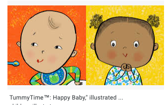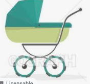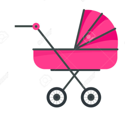 - Illustrated baby, stroller, three pastel primary colours (colour palette attached below) with only black or white outlines.