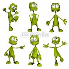 For 15 Alien emotiocns, It is fine to use same alien with different emotion or action. Or, it is also fine to have several variations of alien. Attached file is reference an alien I would like to have for my app.