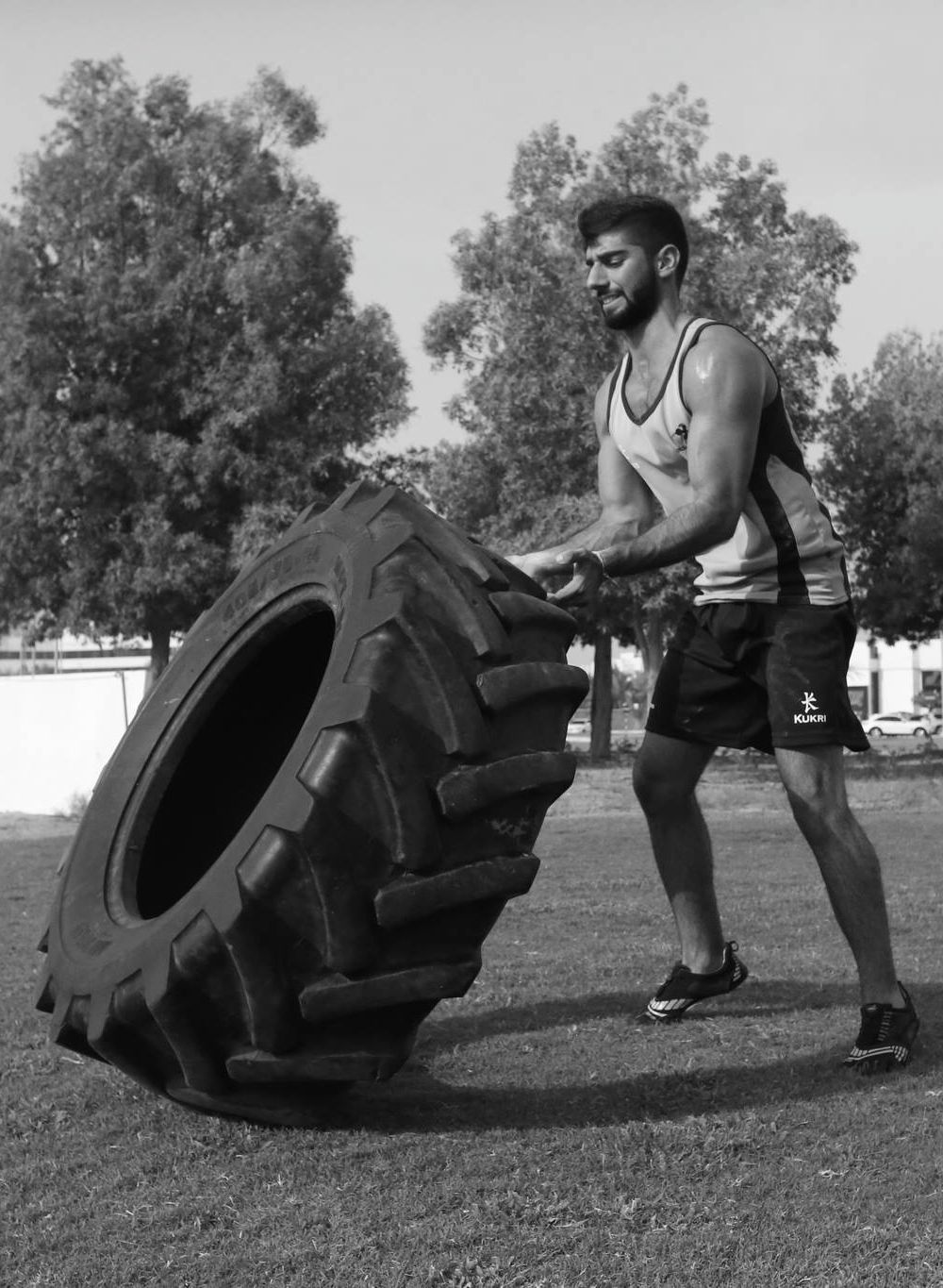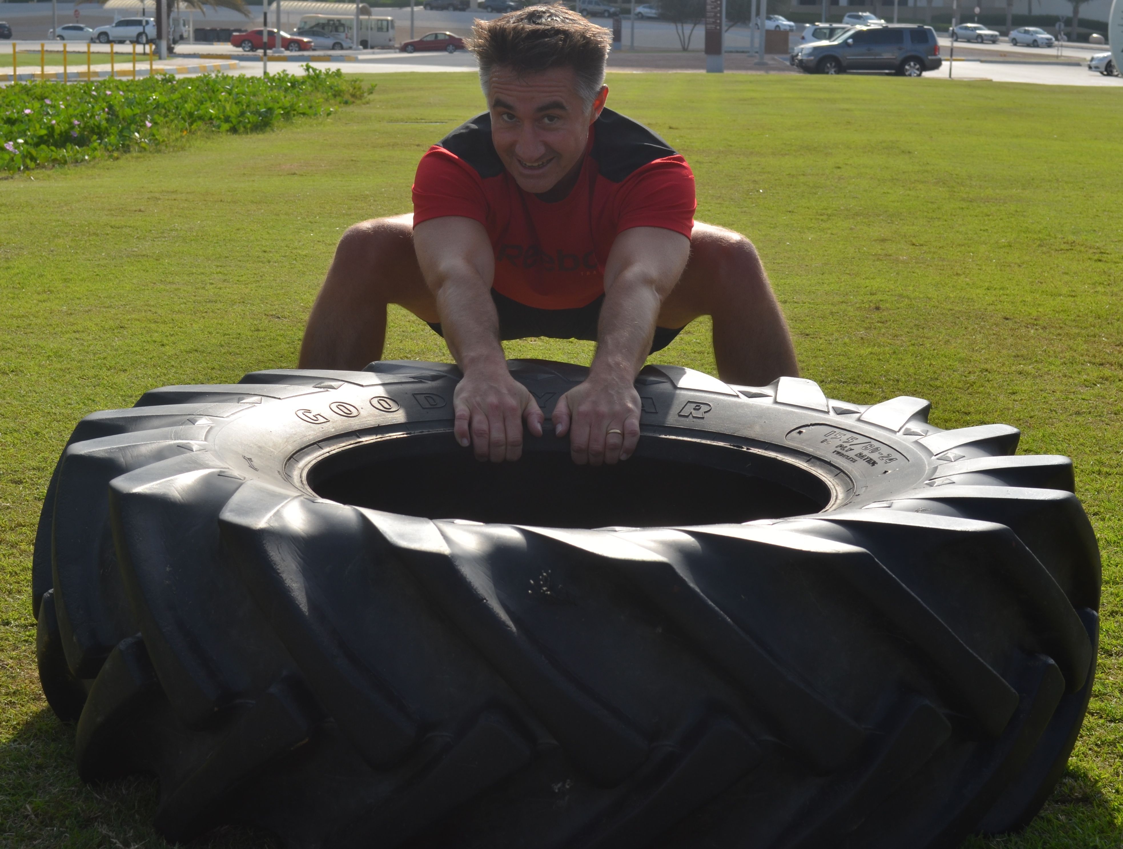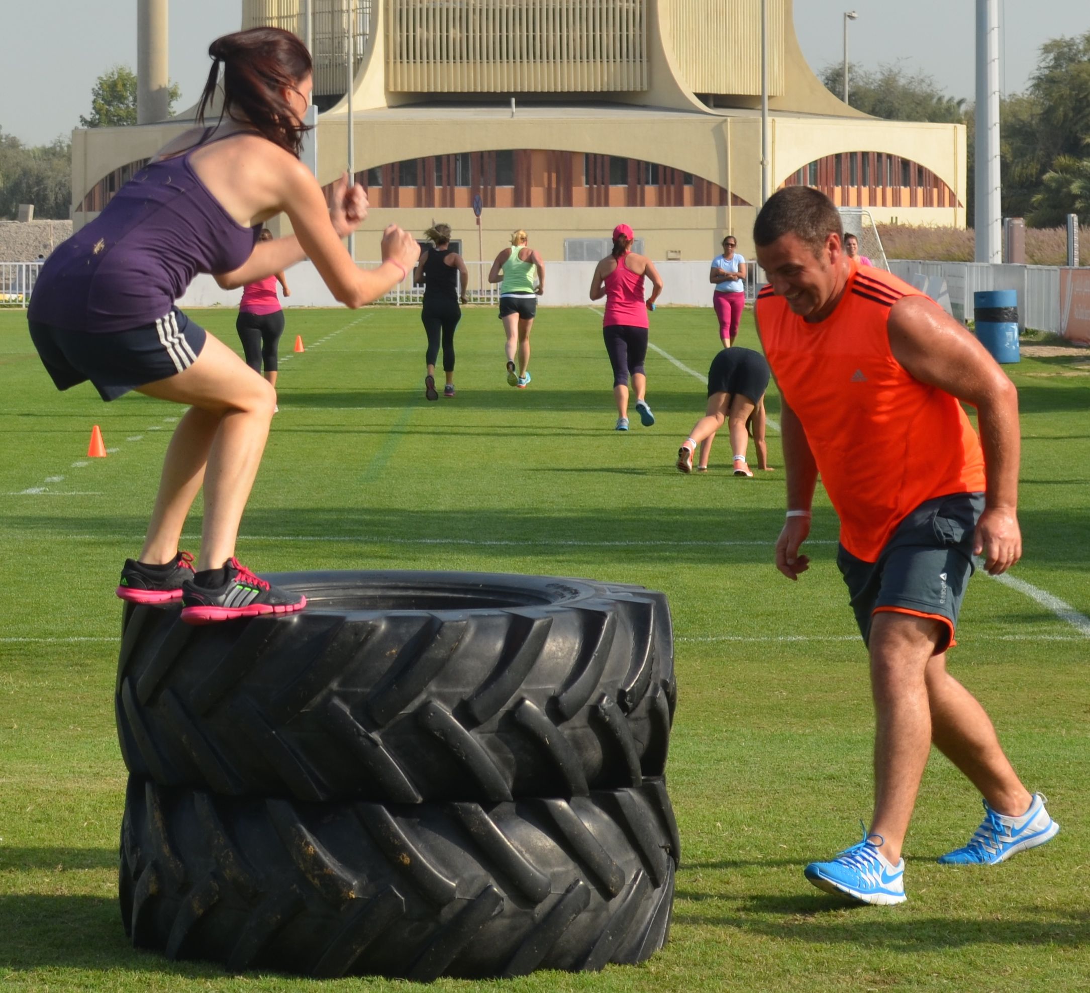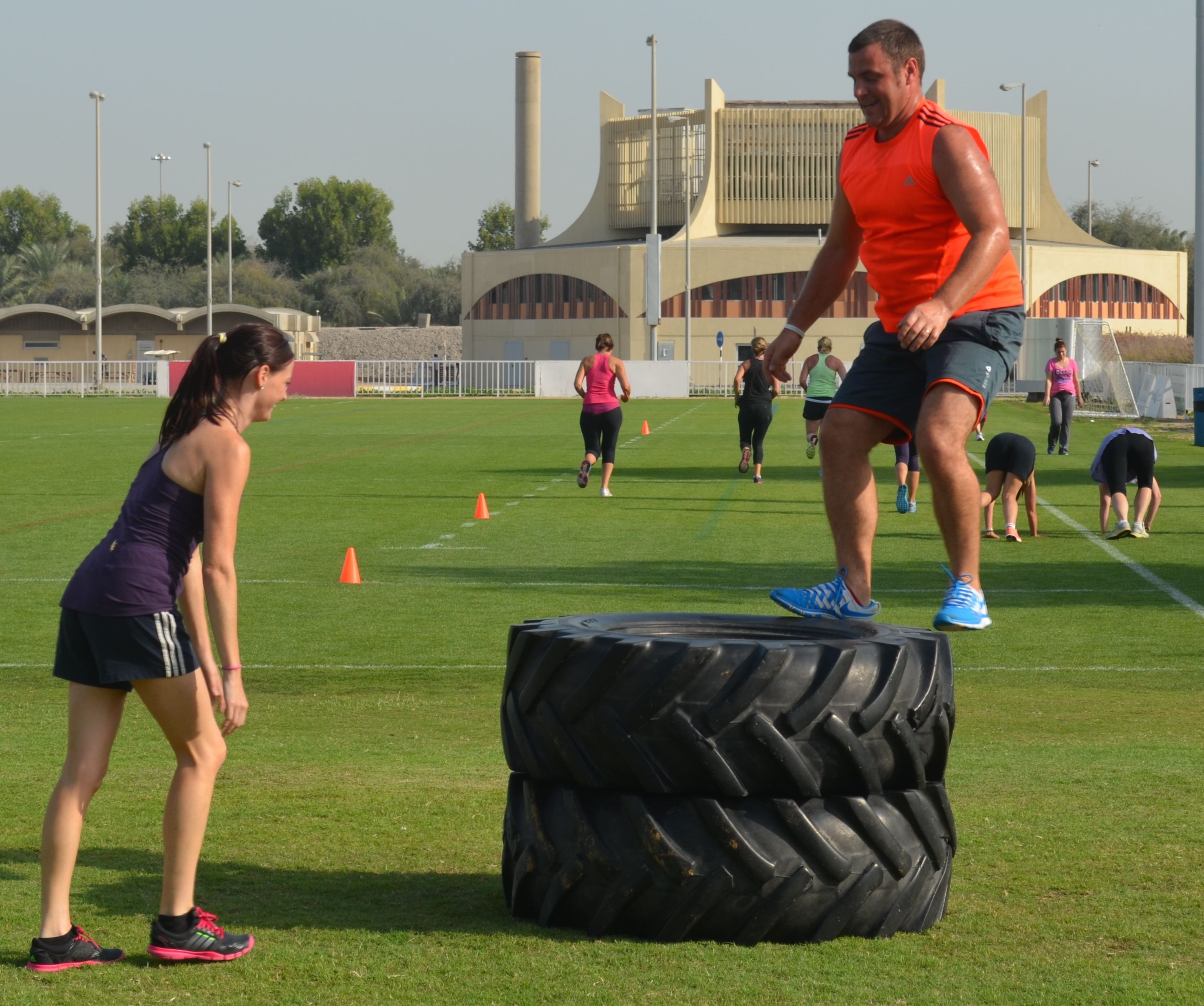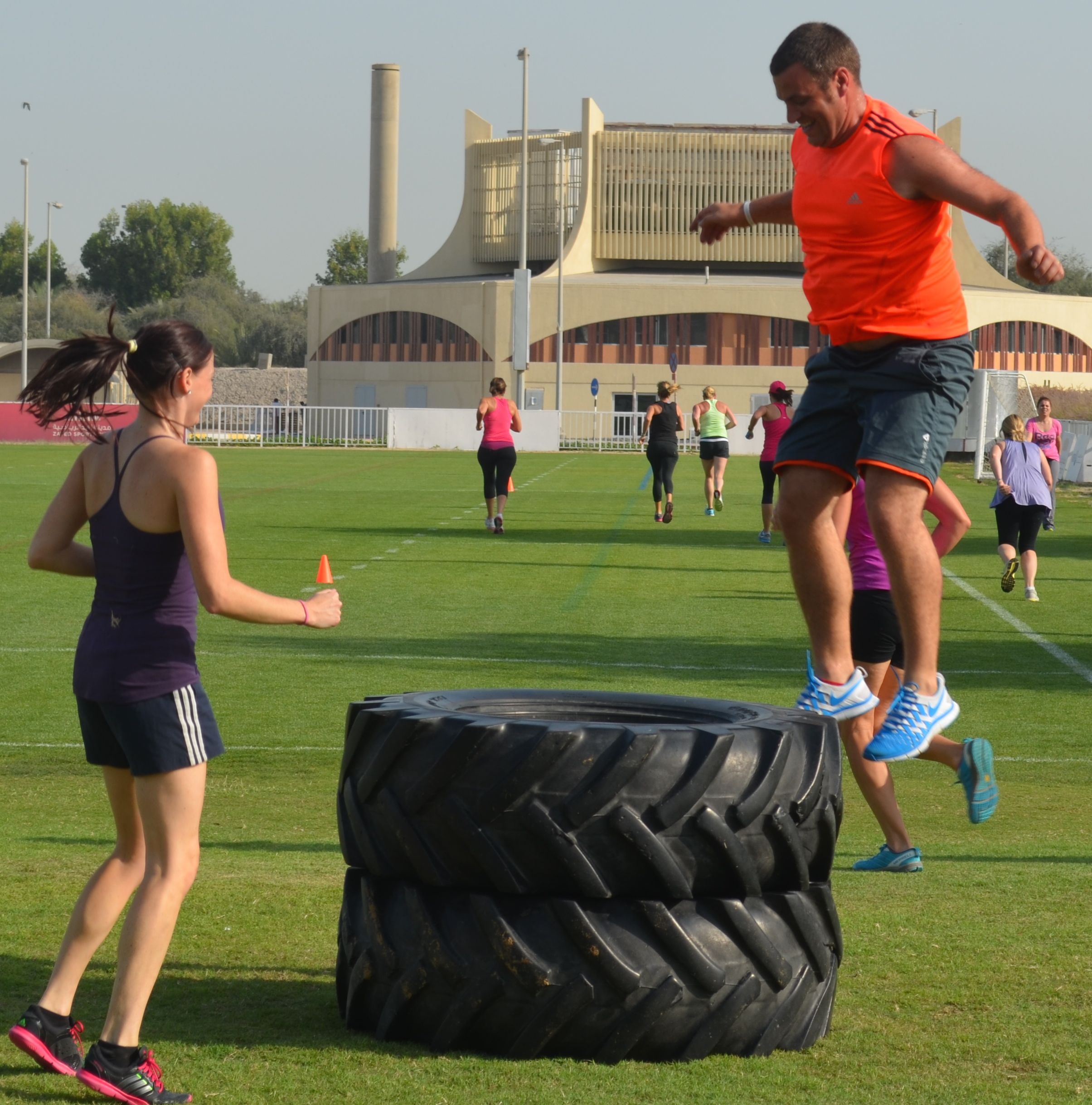 We need the flyer to be WOW, edgy design incorporating elements that make people looking at it think it would be amazing to work out at a beach and look at the sea. The logos of both companies (Yas Beach & Haddins Fitness) should be included in the flyer and the blurb should read: