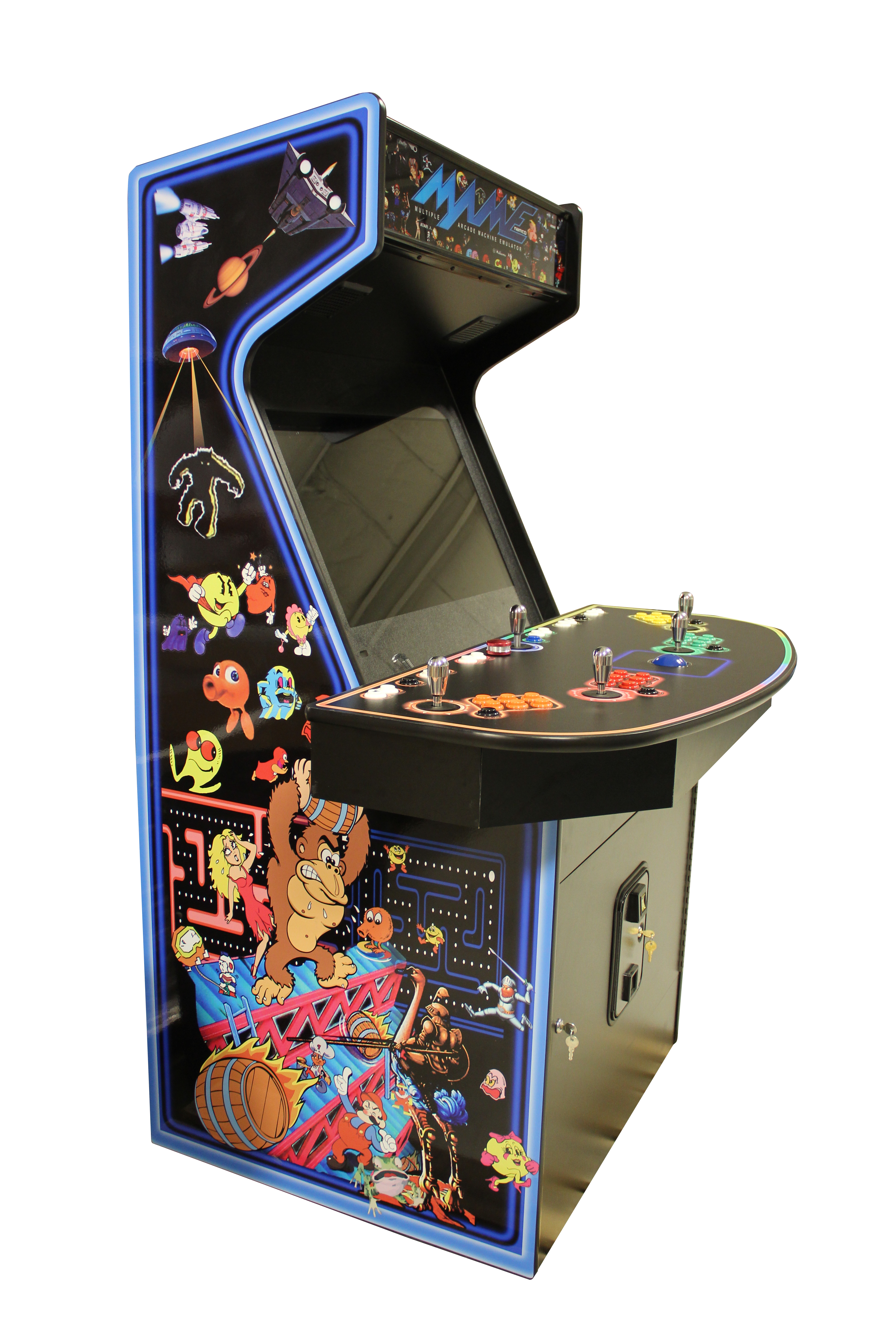 We uploaded some royalty free arcade artwork that the artist is free to use if it adds to the design