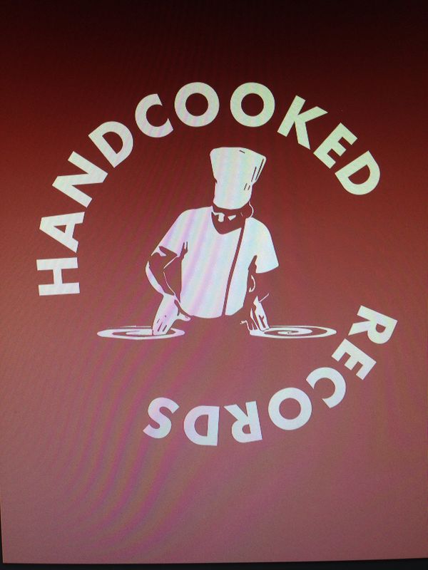 - Silhouette with highlighted areas, chef hat, text Handcooked records