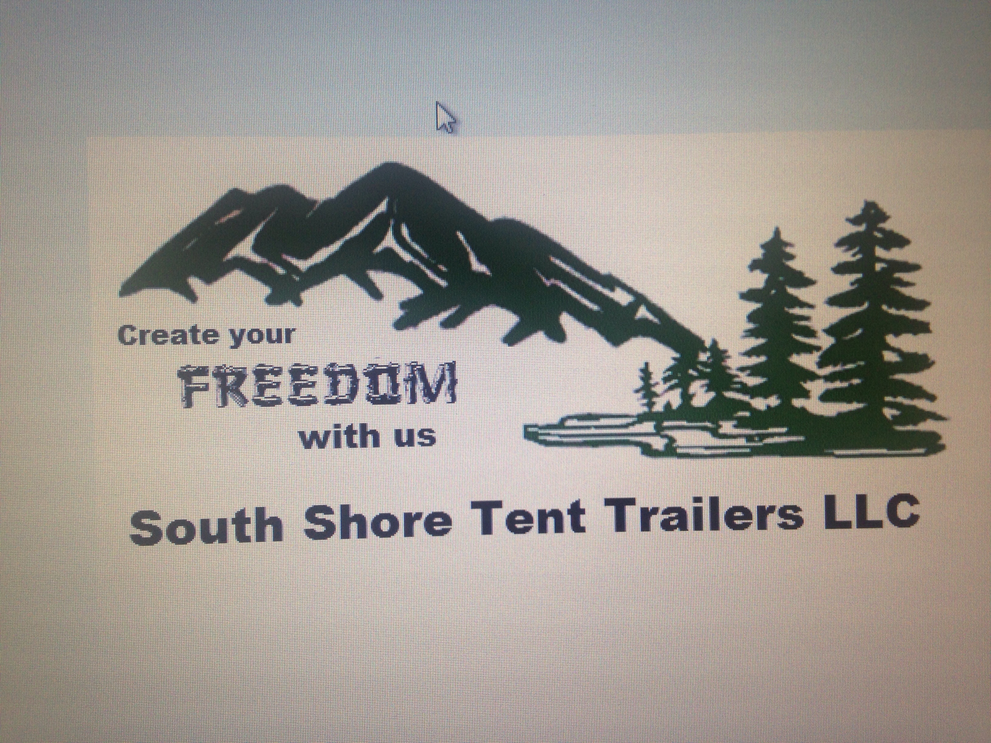 • Create your FREEDOM with us. With FREEDOM written in logs, outdoor scene, South Shore Tent Trailer