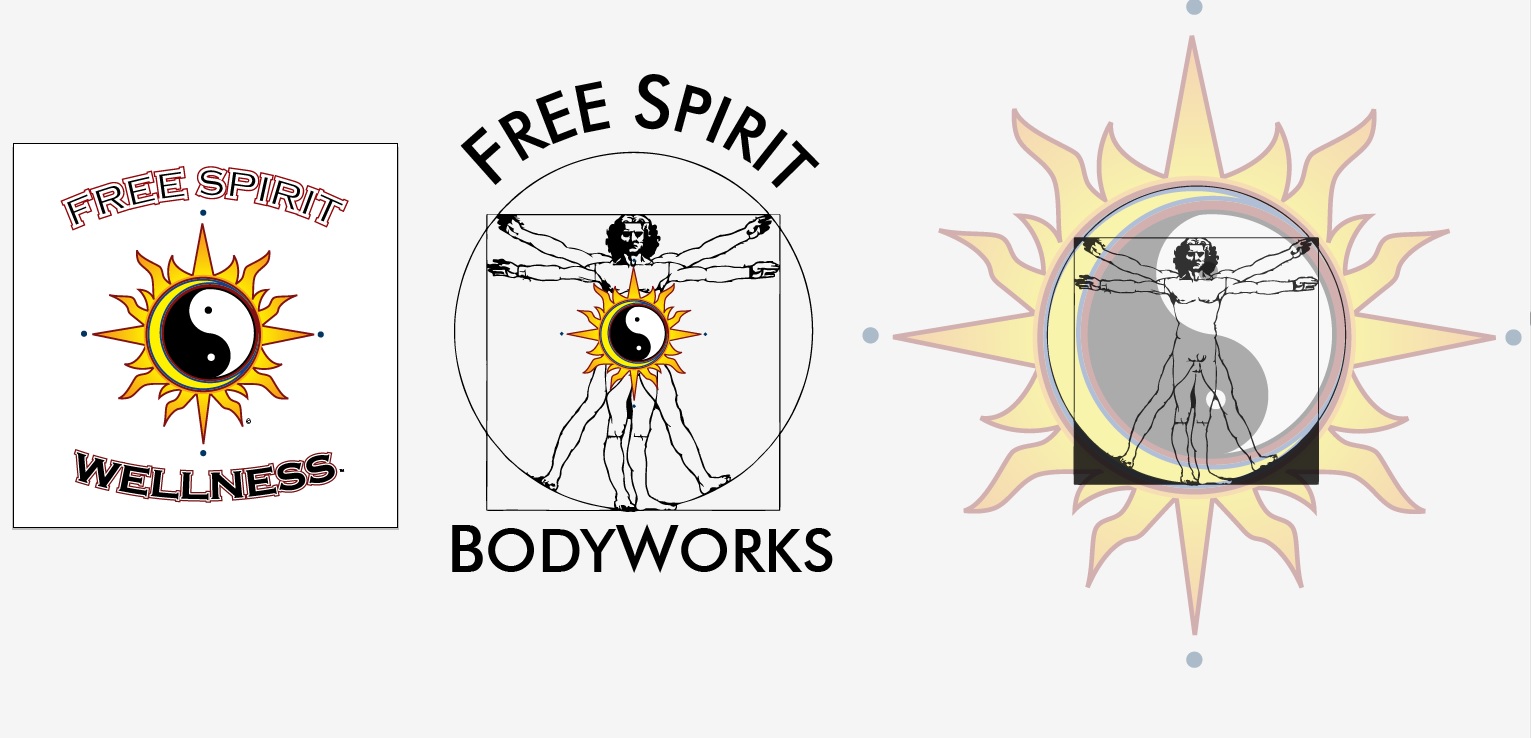 I recently changed my name from Free Spirit Wellness to FREE SPIRIT BODYWORKS as it reflects more accurately what I do. I am attaching my core symbol, current logo, and some ideas I've been playing around with. I'm not attached to my symbol but if there's a way to incorporate it, that's fine too.
