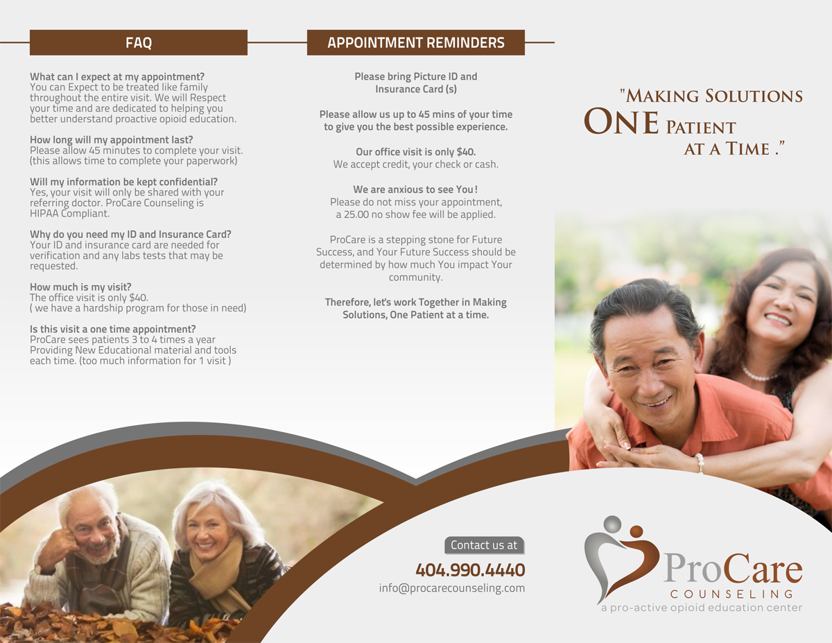 Trifold Brochure needed for Pro Care Counseling