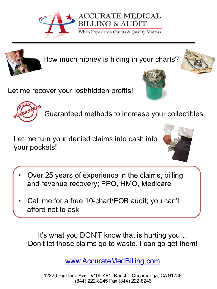 Also I would like the "free 10 chart/EOB audit" to be a bigger deal that would catch the readers eye, maybe an expiration date or some other "call to action"